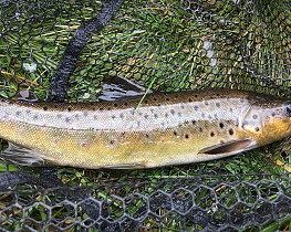 A slow day but great fun in a beautiful spot. All small fish about 1/2-3/4 of a pound plus a swallow that took the dropper whilst the rod propped against the bank and I was unhooking a fish. Netted and returned undamaged to flight.