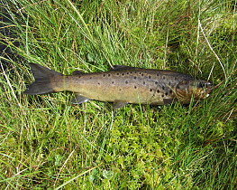 My first time here and a really beautiful remote location. A real gale was blowing most of the day making casting extremely difficult. All fish caught in the last 40 mins when the wind dropped. Lovely looking trout with distinctive markings and dark fins.