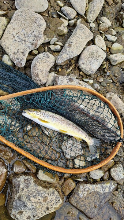 Lovely stretch of river, 5 trout to the net a few more lost. Some large very spooky trout to try catch next time.