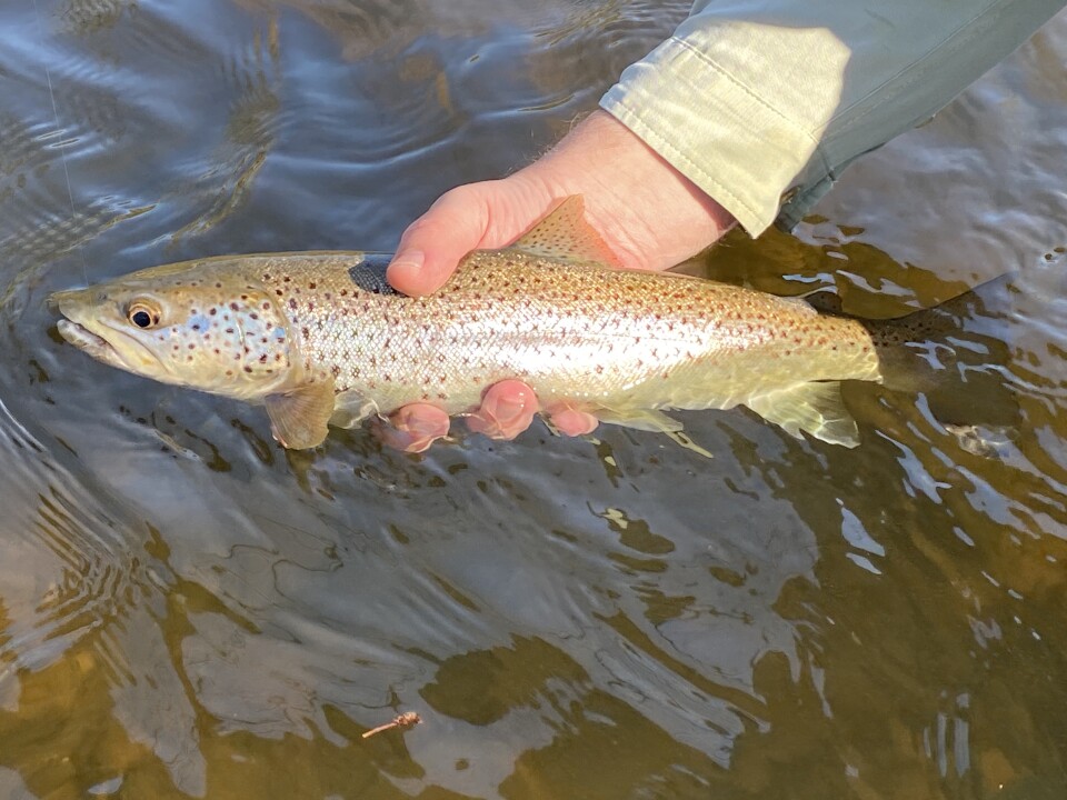 1pm, the odd stonefly and a brief hatch of March brown. Despite this I didn’t see any fish rising although another angler on the beat had a few risers during the MB hatch.