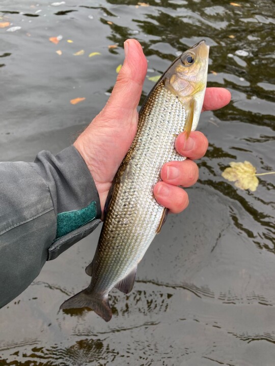 Heavy rain was forecast but it wasn’t too bad and also a tad warmer than the previous day. We fished for around 3 hours and managed a few modest grayling and a chub on nymphs. Some out of season trout also showed interest.
