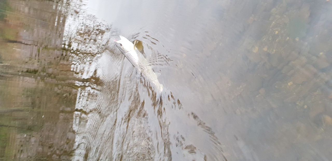 7-8lb freshish cock fish from Ash pool on a 3 inch wing black and yellow monkey. Hit it just right, river perfect
